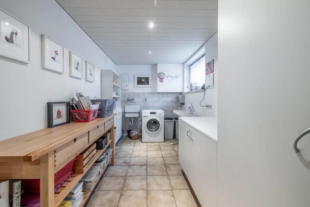 Im gepflegten Vollkeller des Gebäudes eröffnen sich weitere Möglichkeiten. Ein richtig cooler Partykeller mit Bar, ein wohnlich ausgebauter Raum für Ihr Home-Office oder Ihre Hobbys, ein weiteres Bad mit Dusche sowie ein Hauswirtschafts-, Vorrats- und Heizungsraum schaffen Flexibilität und Komfort.