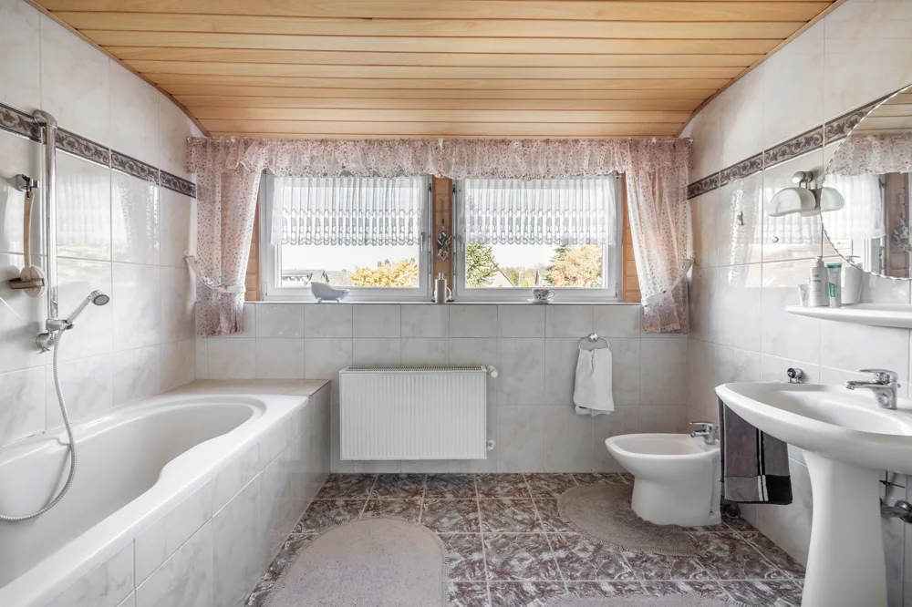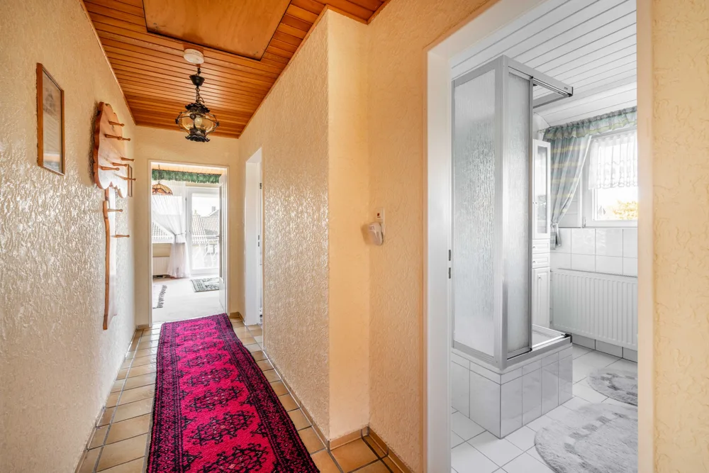 Im Inneren erwarten Sie ca. 129 qm Wohnfläche, die über die Jahre behutsam bereits in Teilen modernisiert wurden. Schon beim Betreten fällt die gepflegte Substanz auf: erneuerte Fenster mit Außenjalousien (2004), die Haustür (2008), modernisierte Bäder sowie eine erneuerte Dacheindeckung inklusive erneuerter Gauben und Giebelverkleidung. Die noch anstehenden Modernisierungen sind überschaubar. Somit ist dies ein ideales Haus für alle, die bald einziehen und Schritt für Schritt weiter gestalten möchten.
