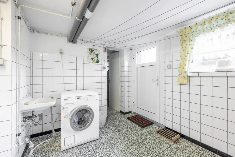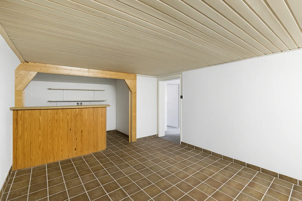 Der Vollkeller mit Partyraum, verschiedenen Lagerräumen, Waschbereich mit dem Garten-WC und dem separaten Ausgang macht das Haus zudem auch praktisch. Eine Garage, eine Werkstatt, ein Pavillon, Starkstrom, Gartenwasserwerk und die Option auf Glasfaser ergänzen dieses attraktive Angebot.
