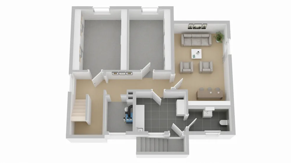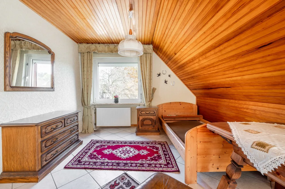 Aktuell bietet das Haus vier Zimmer, da der Grundriss in der Vergangenheit bereits geändert wurde. Durch Teilung von Zimmern können insgesamt sechs Zimmer entstehen, wenn dies gewünscht ist. Auch ist die Aufteilung in ein Zweifamilienhaus möglich.