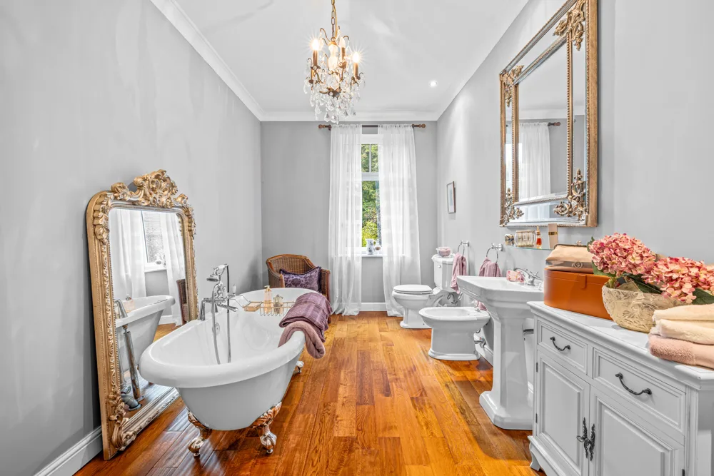 Das repräsentative Anwesen erinnert an einen britischen Landsitz und beeindruckt bereits mit dem Befahren des Hofgrundstücks. Weiterer Zauber entfaltet sich, sobald Sie das Haupthaus betreten. 2013 umfassend modernisiert, verbindet es historische Substanz mit stilvoller Eleganz und beeindruckt durch Großzügigkeit in Kombination mit den viktorianischen Elementen.