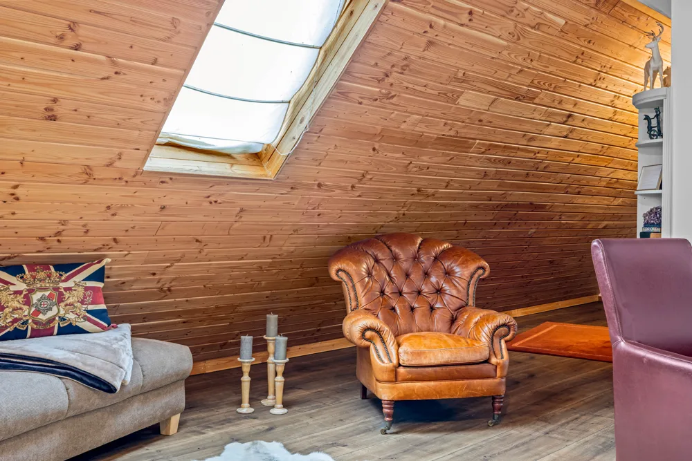 Im Obergeschoss setzen sich die stilvollen Akzente fort: gemütliche Wohn- und Schlafräume sowie weitere Bäder, eines davon erneut im klassischen britischen Stil, schaffen Raum für Ihr Familienleben und Ihre Gäste. Liebevolle Einrichtungselemente vereinen Komfort und Landhauscharme auf höchstem Niveau.