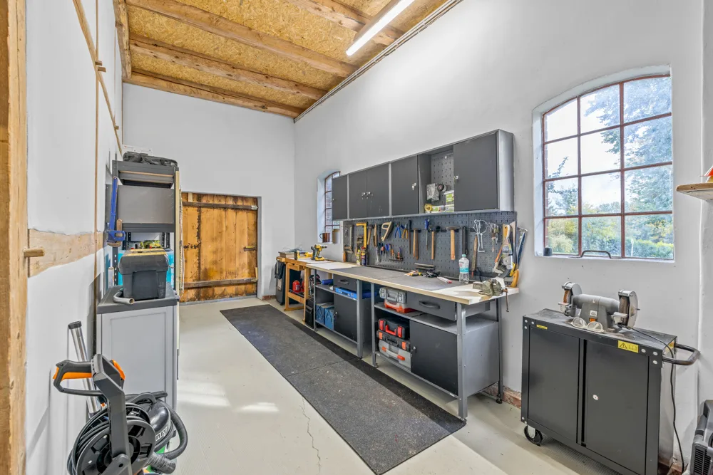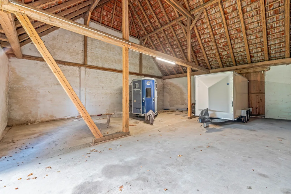 – Stallgebäude mit Unterstellmöglichkeiten für u.a. Pferdeanhänger und PKWs, separate Werkstatt,