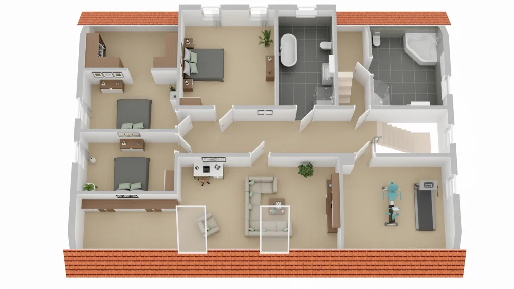 – weiteres Zimmer, z.B. als Fitnessraum oder Büro nutzbar.Dachgeschoss / Keller: